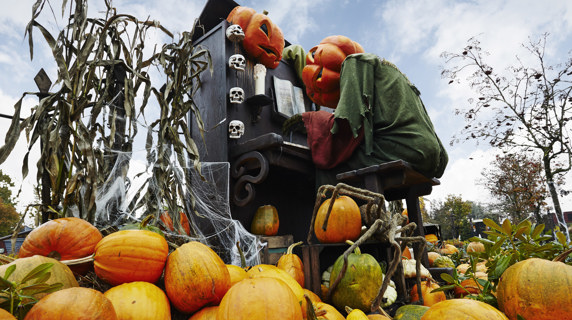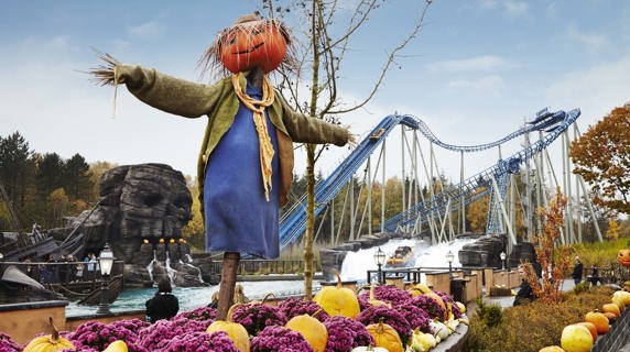 Store halloween-væsener spreder gys og stemning i efterårsferien, og parken pyntes med 40.000 græskar